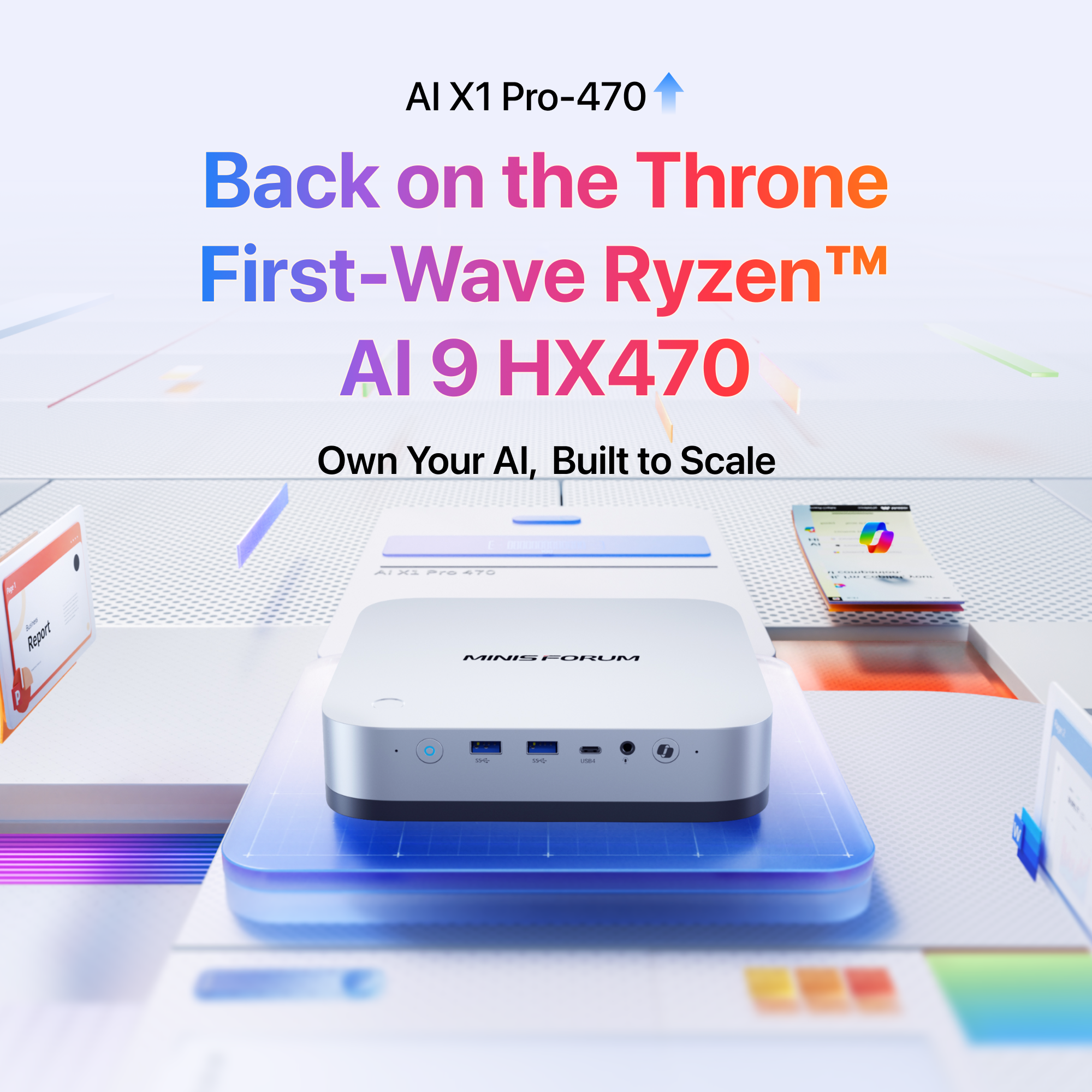 Utilize the cutting-edge AMD Ryzen™ AI 9 HX 470 processor, step into the future with the MINISFORUM AI X1 Pro. Experience next-level AI technology that supercharges multitasking, boosts productivity, enhances teamwork, and delivers efficiency like never before.